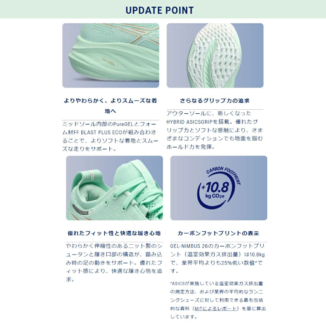 ソフトな履き心地と快適性を追求したニュートラルクッションモデル GEL-NIMBUS 26
