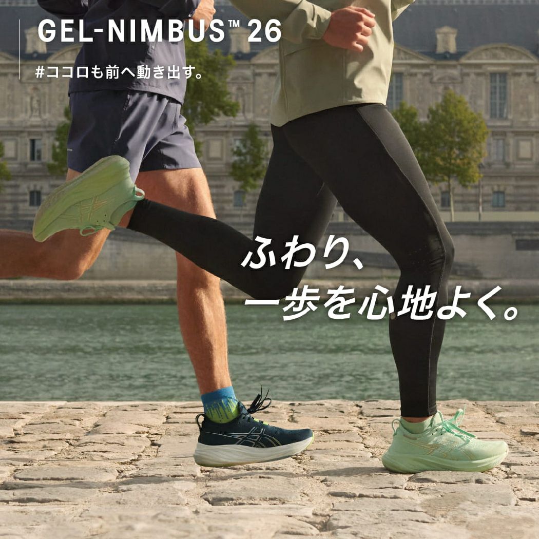 ソフトな履き心地と快適性を追求し、スムーズなランニング体験を生み出すためにアップデートしたニュートラルクッションモデル GEL-NIMBUS 26。
