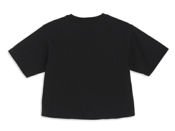 クロップド丈とフロントに配された大胆なブランドロゴで個性を