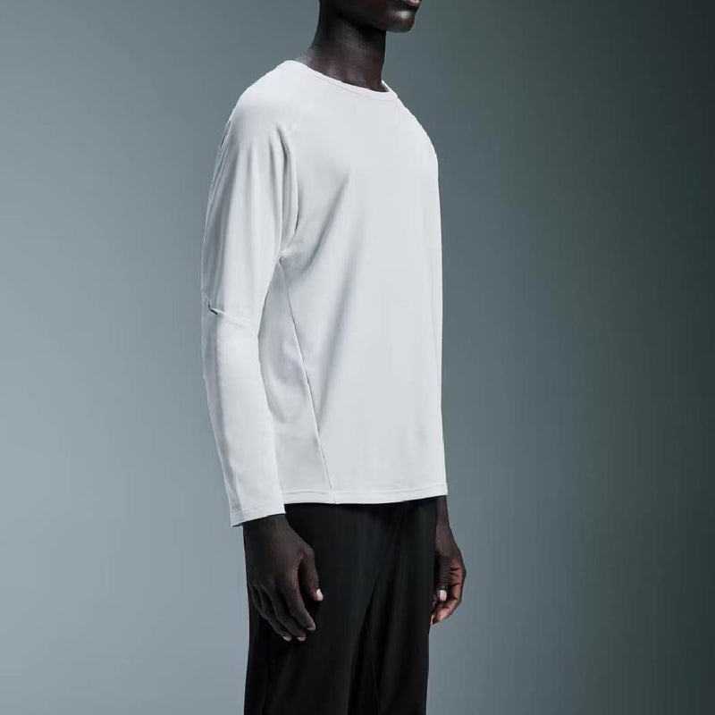 吸湿速乾性に優れた素材をシンプルなスタイルに仕立てた長袖Tシャツ。