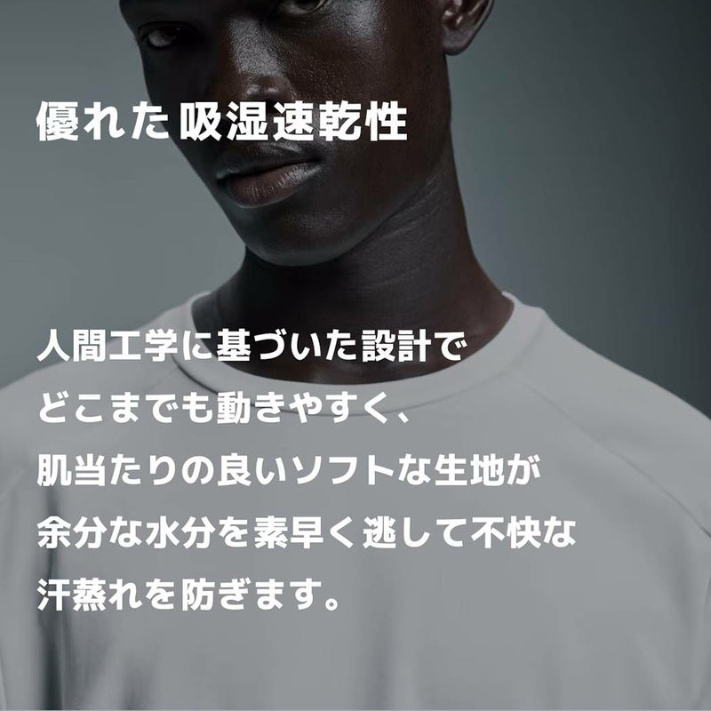 肌当たりの良いソフトな生地が余分な水分を素早く逃して不快な汗蒸れを防ぎます。