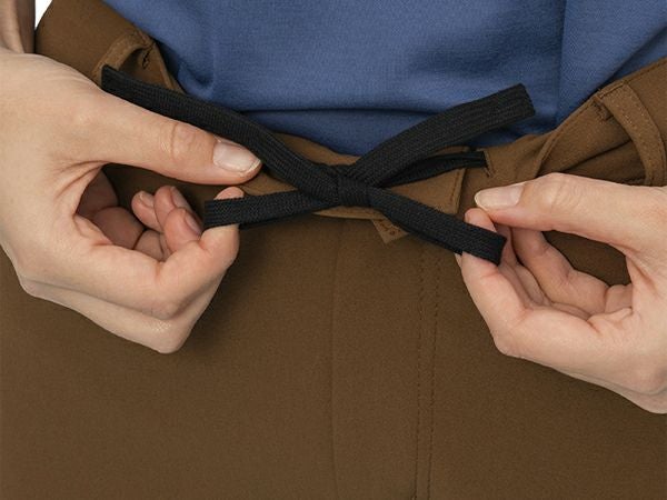 ウエスト:総ゴム入り・前開き・ベルトループあり・内側ひも通しあり