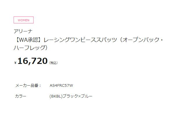 【40%OFF】 アリーナ arena WA承認 レーシングワンピーススパッツ(オープンバック ハーフレッグ) レディース ブラック 黒 水泳 スイム 競泳 水着 オールインワン AS4FRC57W-BKBL アウトレット セール