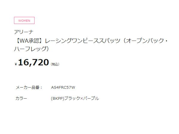 【40%OFF】 アリーナ arena WA承認 レーシングワンピーススパッツ(オープンバック ハーフレッグ) レディース ブラック 黒 水泳 スイム 競泳 水着 オールインワン AS4FRC57W-BKPP アウトレット セール