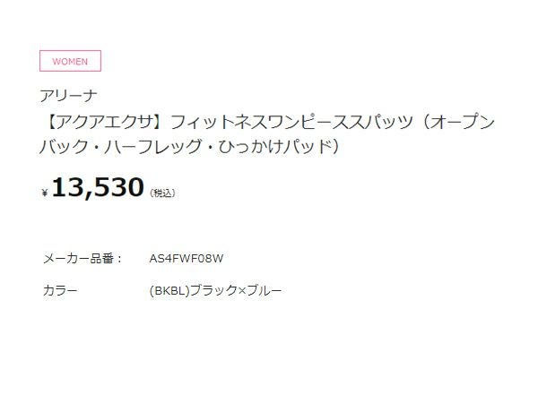 【26%OFF】水泳 スイム フィットネス 水着 アリーナ arena アクアエクサ フィットネスワンピーススパッツ(オープンバック ハーフレッグ ひっかけパッド) レディース ブラック 黒 水泳 スイム フィットネス 水着 オールインワン AS4FWF08W-BKBL