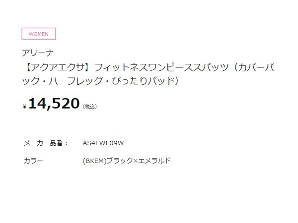 6. アリーナ arena アクアエクサ フィットネスワンピーススパッツ(カバーバック ハーフレッグ ぴったりパッド) レディース ブラック 黒 水泳 スイム フィットネス 水着 オールインワン AS4FWF09W-BKEM アウトレット セール