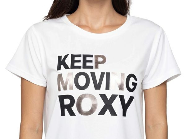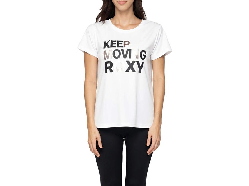 スポーツ フィットネス ウェア ロキシー ROXY KEEP MOVING キープ ムービング レディース 春 夏 水陸両用 速乾 UVカット ホワイト 白 スポーツ フィットネス 半袖 Tシャツ RST244532-WHT
