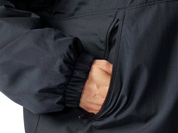 撥水加工を施したファブリックが雨や雪をはじき、悪天候下でもドライで