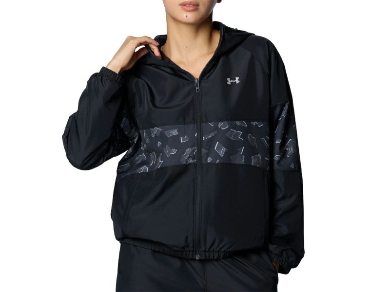 6. アンダーアーマー UNDER ARMOUR UAトリコット ウーブン フルジップ フーディー レディース 秋 冬 ブラック 黒 スポーツ フィットネス パーカー ジャケット 1388192-001