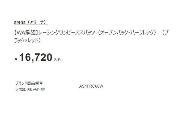 6. アリーナ arena WA承認 レーシングワンピーススパッツ(オープンバック ハーフレッグ) レディース ブラック 黒 水泳 スイム 競泳 水着 オールインワン AS4FRC68W-BKRD アウトレット セール