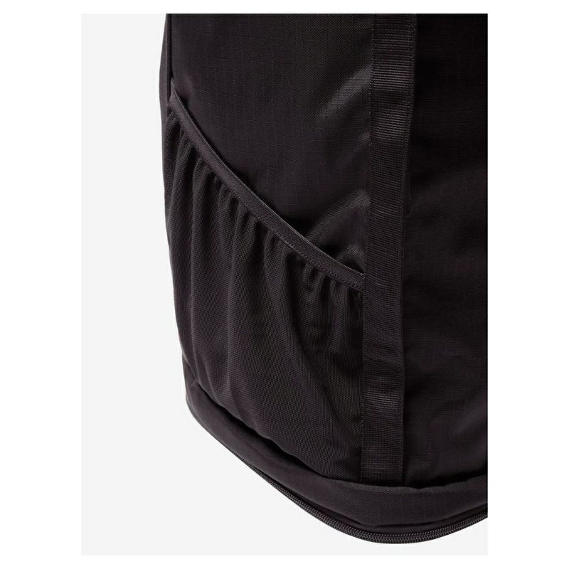 背負って使用するとき以外はショルダーハーネスを下部分で取り外し、背胴側部分に収納してください。立てたときに両サイドにボトルポケットがついています。横型で使用するときは、ポケットに収納は物が落ちることがあるのでご注意下さい。内側にはPCやタブレットを収納するのに便利なクッション仕切りポケットがついています。容量34L。