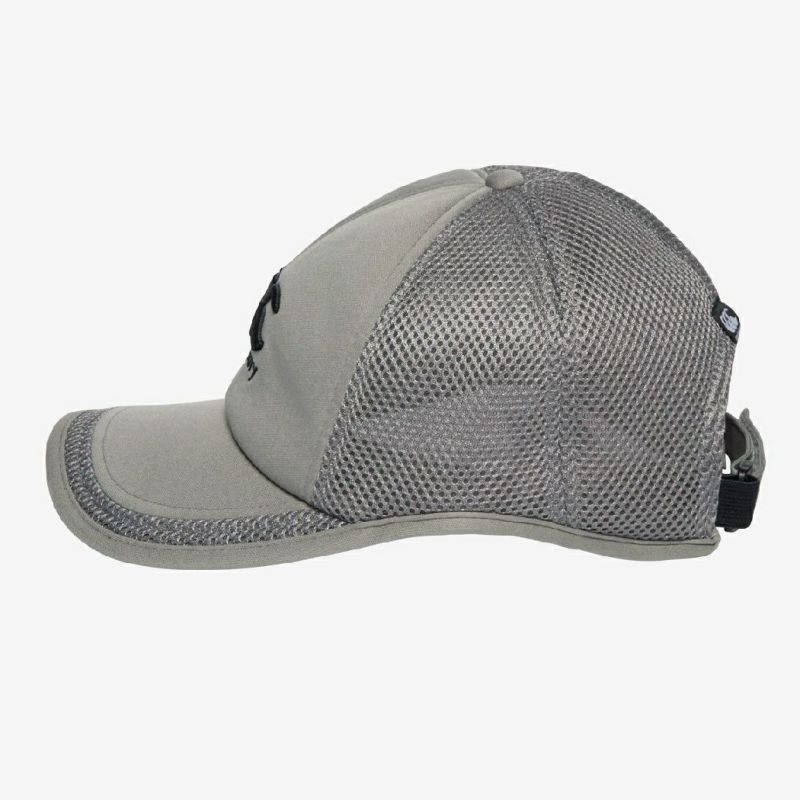 フラットな素材と、嵩のある通気性に優れたラッセルメッシュ素材をコンビネーションで使用し、耳上にあたりのないウェービー型のキャップです。