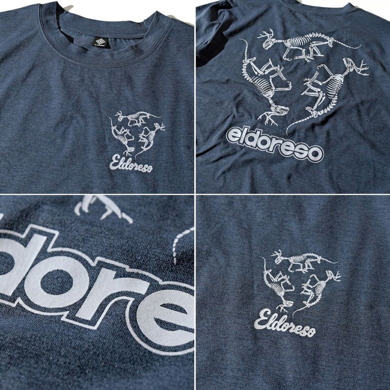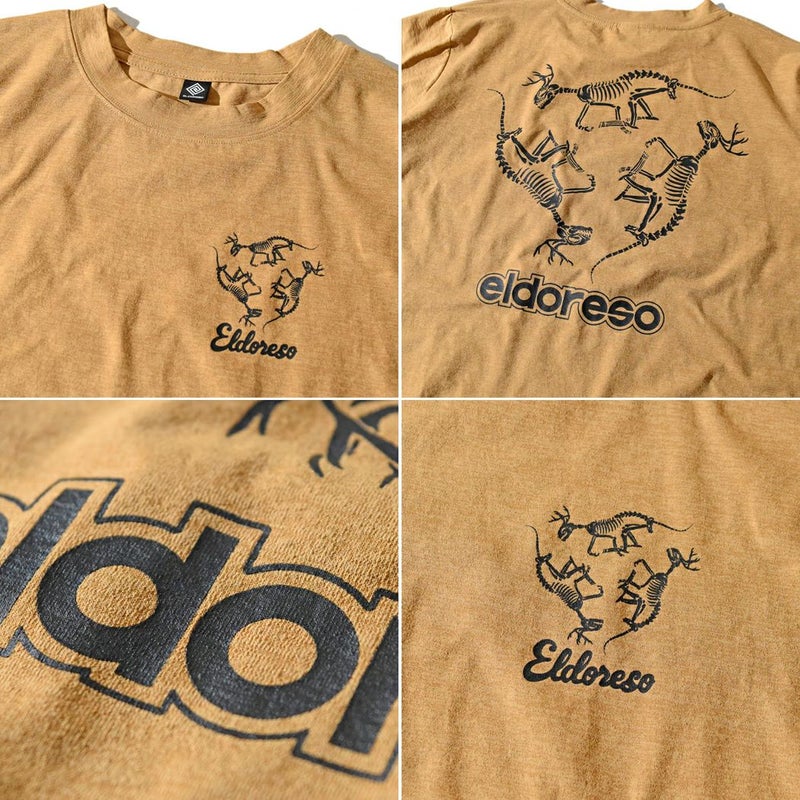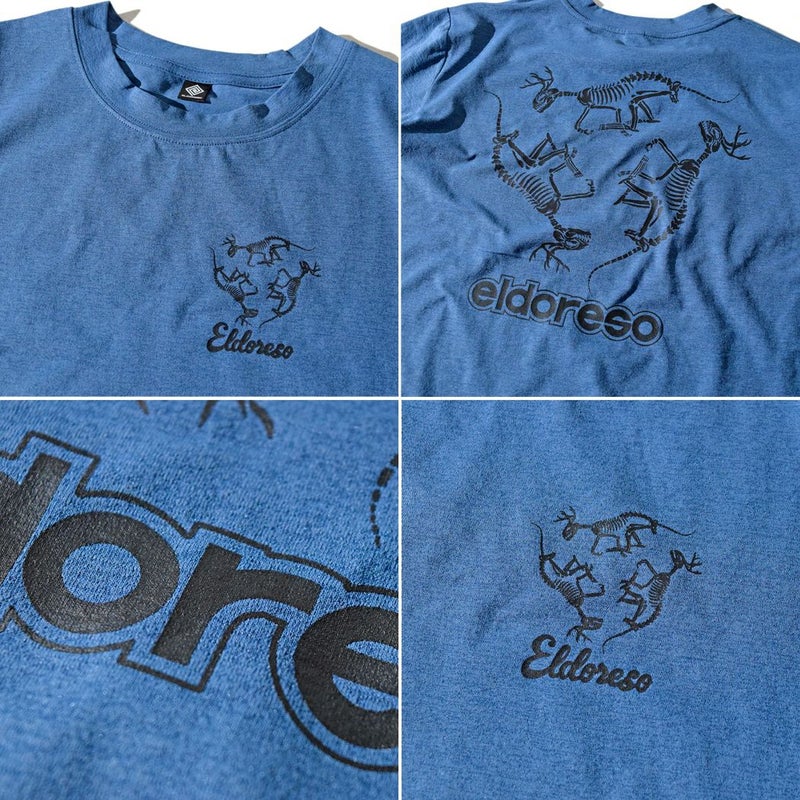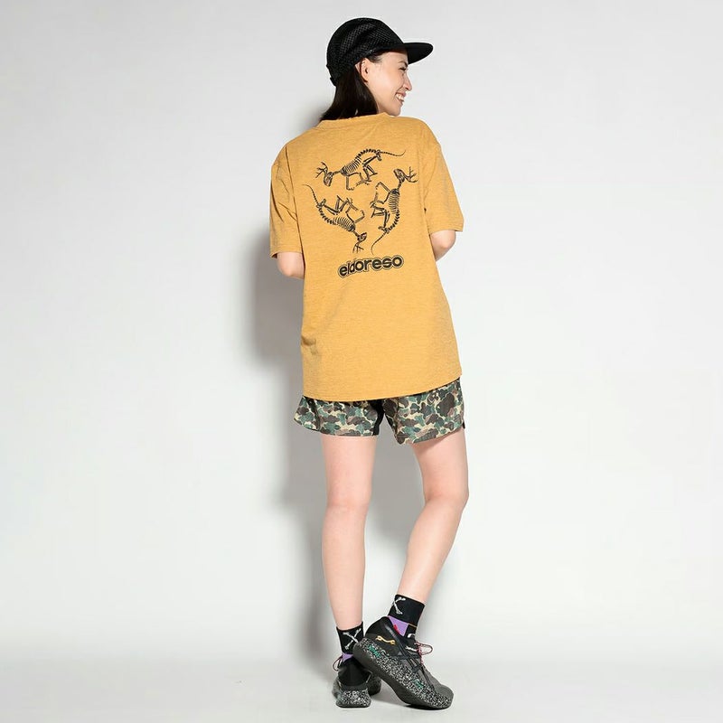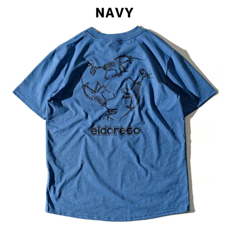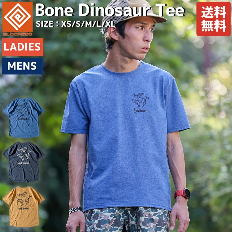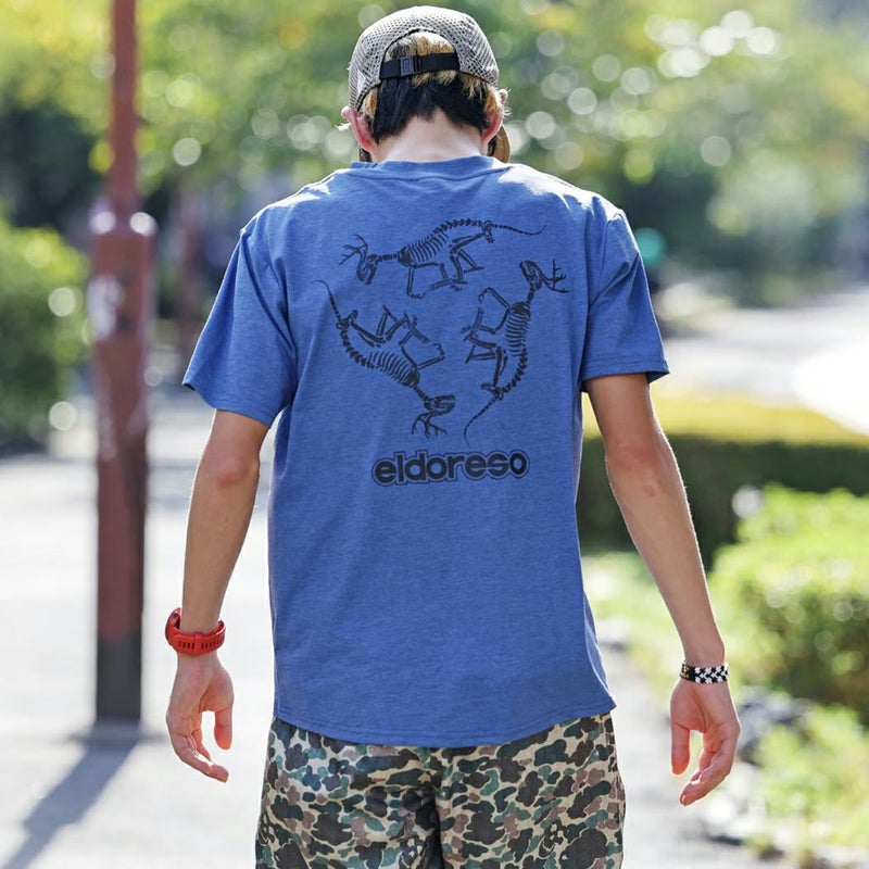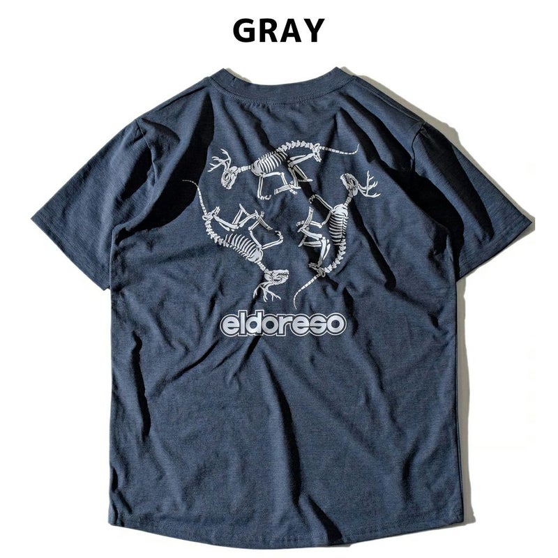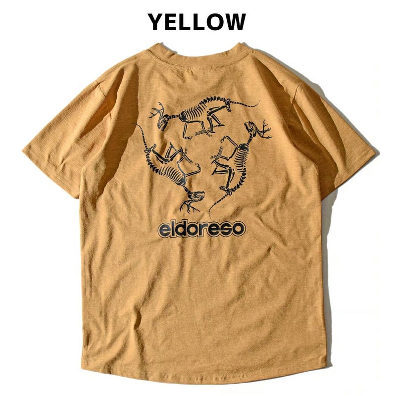 スポーツ トレーニング 半袖 Tシャツ エルドレッソ ELDORESO Bone Dinosaur Tee メンズ レディース ネイビー グレー イエロー ランニングTシャツ 伸縮性 吸水速乾 スポーツ トレーニング 半袖 Tシャツ ボックスシルエット オールドスケートテイスト アクティビティ タウンユース E1013424