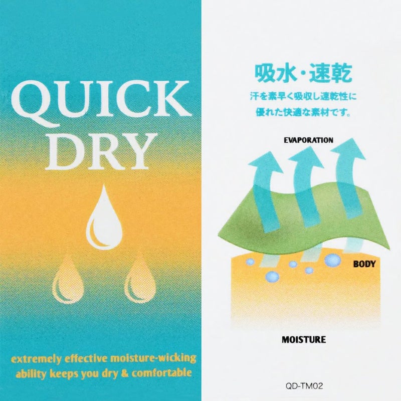 伸縮性が高く、ドライタッチで吸水速乾性に優れたクイックドライのファブリックは、