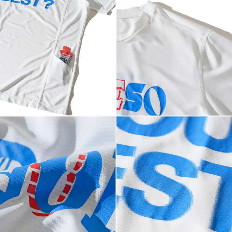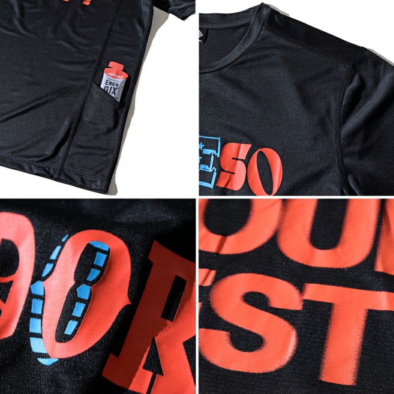ランナーを鼓舞するメッセージをプリントしたランニングTシャツ。