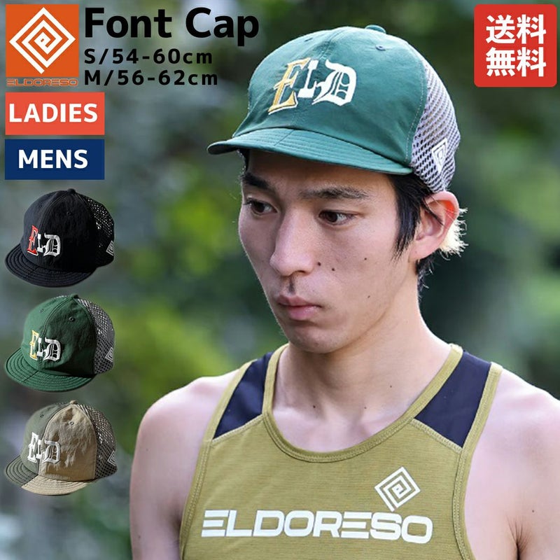 スポーツ 帽子 キャップ エルドレッソ ELDORESO Font Cap メンズ レディース オールシーズン ランニングキャップ 吸水速乾 スポーツ 帽子 キャップ 6パネル ロゴ 刺繍 ランニング E7012324