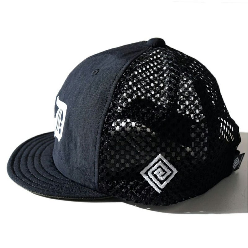 ブランドのイニシャルをフロントに、ブランドロゴを左サイドに刺繍をした、