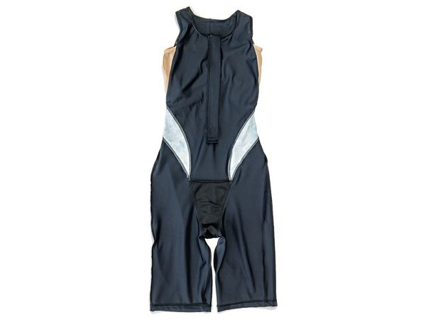 上下一体型のレッグスーツは水中での動きに合わせてストレッチするため