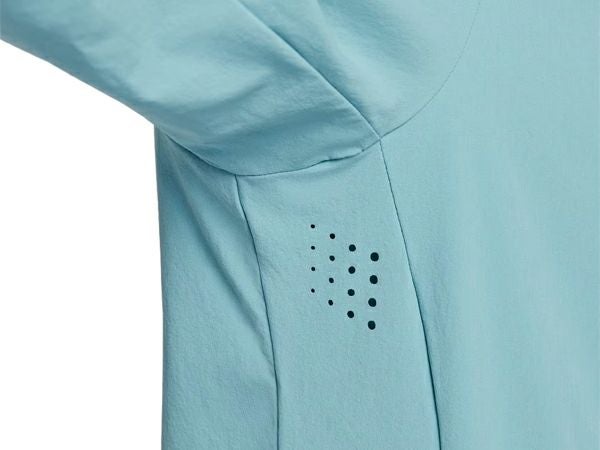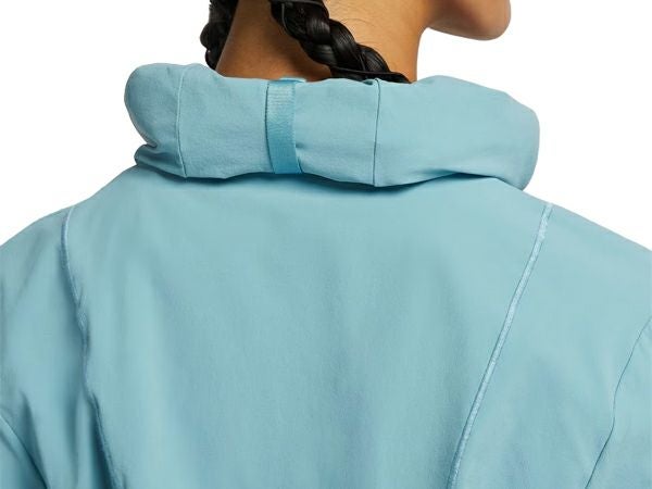 フード背面のポニーテールホールで、髪の毛が顔にかかるのを防止。