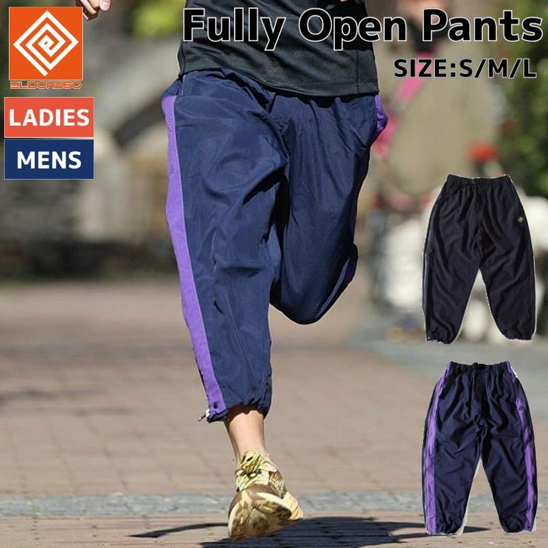 エルドレッソ ELDORESO Fully Open Pants メンズ レディース ナイロン 秋 冬ブラック ブラック×パープル スポーツ ランニング ロングパンツ 撥水 速乾 E2003525