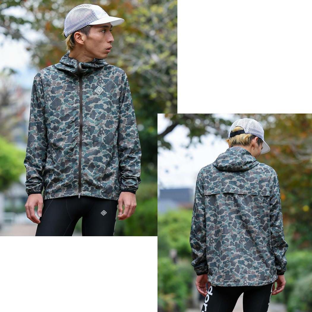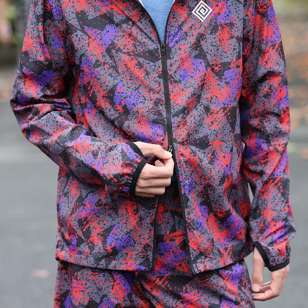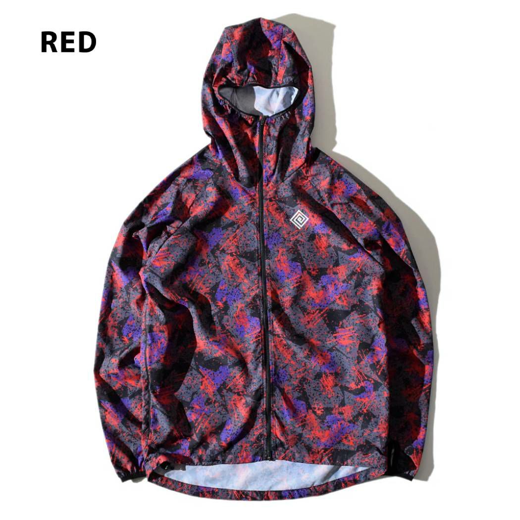 軽量なスポーツ用の生地をベースに用い、緻密で色鮮やかなグラフィックをプリントしたオリジナルテキスタイルを贅沢に使用して作成したウインドシェルです。