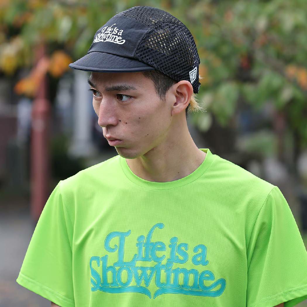 ランニングキャップに必須の機能・通気性を確保する為、サイドからバックにかけて目が大きく柔らかなメッシュに切り替えています。