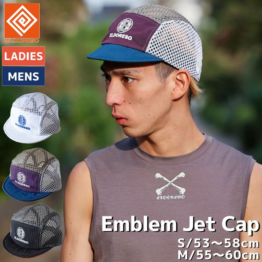 スポーツ 帽子 キャップ エルドレッソ ELDORESO Emblem Jet Cap ランニングキャップ メンズ レディース 春 夏 ブラック マルチ ホワイト スポーツ 帽子 キャップ メッシュ E7012524