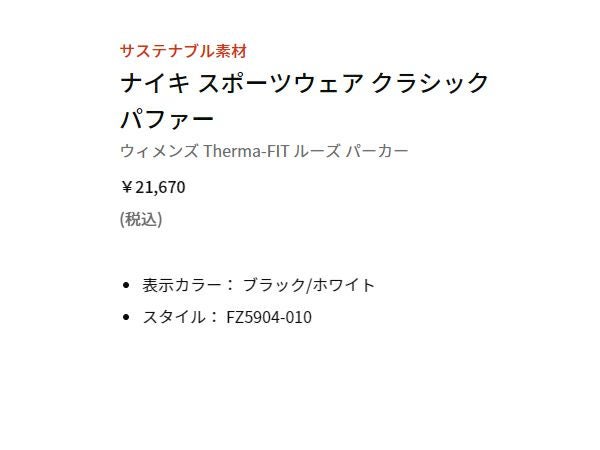 【54%OFF】 ナイキ NIKE スポーツウェア Therma-FIT クラシック パファー ルーズ パーカー レディース 秋 冬 ブラック 黒 スポーツ フィットネス アウター ジャケット FZ5904-010 アウトレット セール