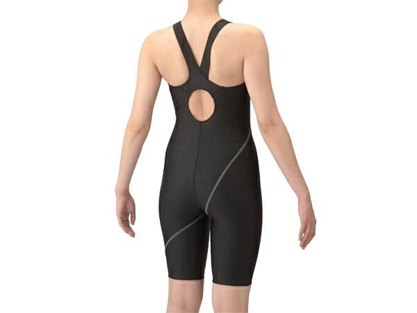 6. アリーナ arena アクアエクサ フィットネスワンピーススパッツ(オープンバック ひっかけパッド) レディース ブラック 黒 水泳 スイム フィットネス 水着 オールインワン AS5SWF02L-BKGY