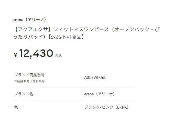 6. アリーナ arena アクアエクサ フィットネスワンピース(オープンバック ぴったりパッド) レディース ブラック 黒 ピンク 桃色 水泳 スイム フィットネス 水着 ワンピース AS5SWF06L-BKPK アウトレット セール