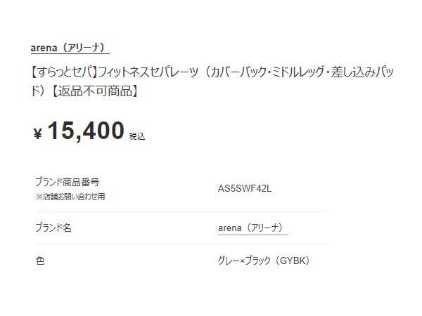 【10%OFF】水泳 スイム フィットネス 水着 アリーナ arena すらっとセパ フィットネスセパレーツ(カバーバック ミドルレッグ 差し込みパッド) レディース グレー 灰色 ブラック 黒 水泳 スイム フィットネス 水着 AS5SWF42L-GYBK