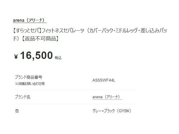 6. アリーナ すらっとセパ フィットネスセパレーツ(カバーバック ミドルレッグ 差し込みパッド) レディース arena アウトレット セール
