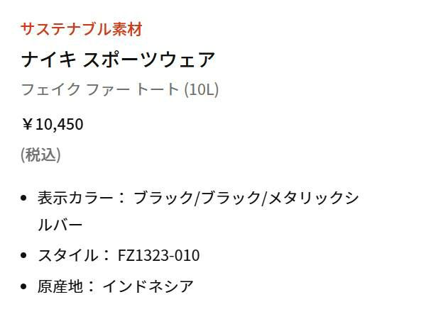 5. ナイキ NIKE フェイク ファー トート 10L レディース ブラック 黒 カジュアル バッグ 鞄 かばん 斜め掛け FZ1323 010