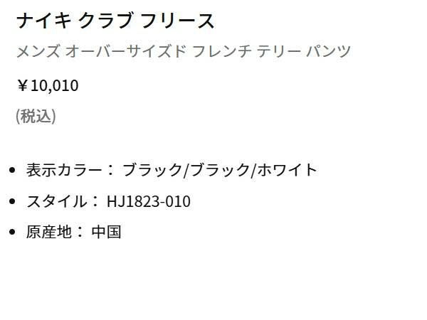 6. ナイキ NIKE クラブ フリース オーバーサイズド フレンチ テリー パンツ メンズ ブラック 黒 カジュアル ウェア HJ1823 010