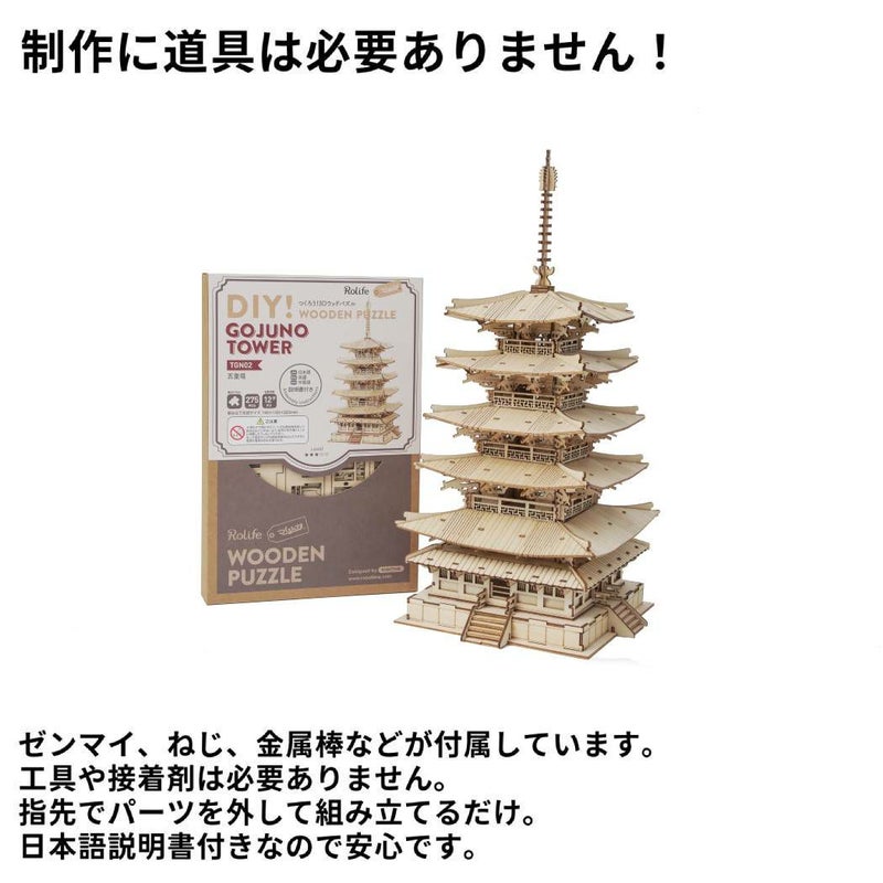 4. つくるんです tukurundesu TGN02 五重塔 パズル 3Dパズル ウッドパズル 立体パズル 子供 大人 親子 立体工作 工作キット おもちゃ 知育玩具 脳トレ 誕生日 クリスマス プレゼント 春休み 夏休み 冬休み 宿題 課題 ギフト 贈り物 664921