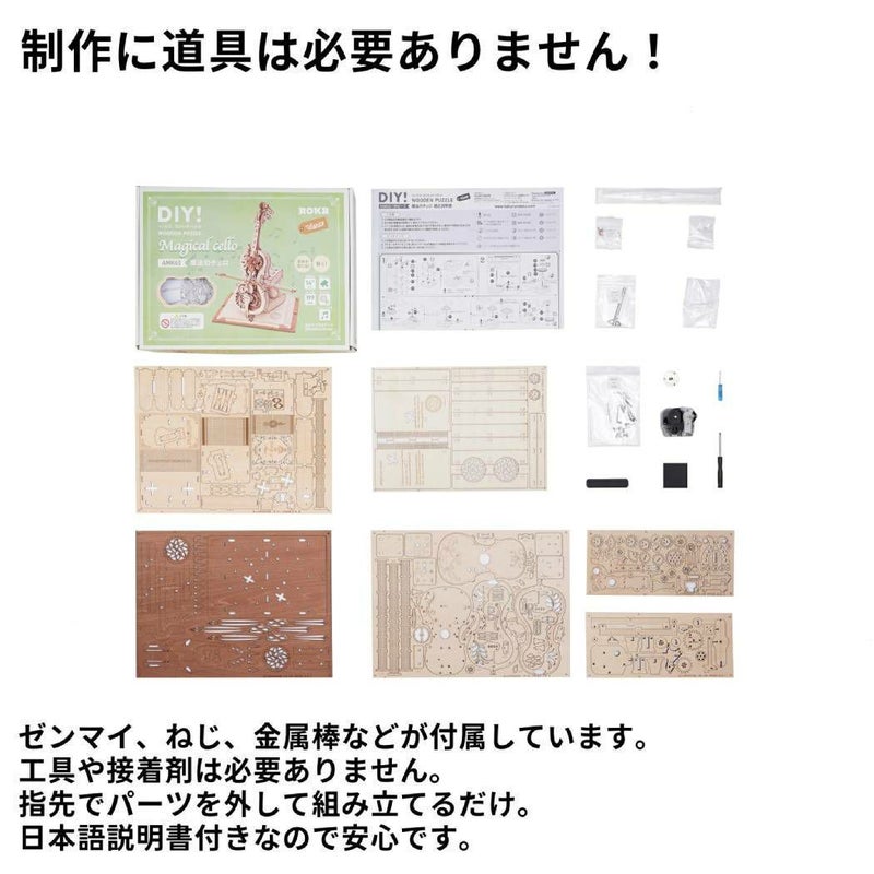 このキットは、カット済みウッドシートとサンドペーパーが入ったオールインワン組み立てキット。