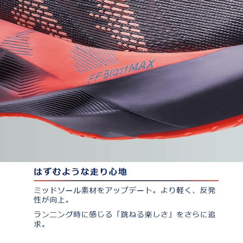 ミッドソールのFF BLAST MAXが、ソフトな着地と、反発性を提供し、心地良い走りをサポート。