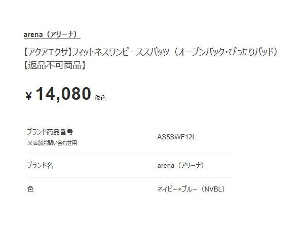 6. アリーナ arena アクアエクサ フィットネスワンピーススパッツ(オープンバック ぴったりパッド) レディース ネイビー 紺 水泳 スイム フィットネス 水着 オールインワン AS5SWF12L-NVBL アウトレット セール