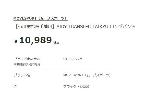 【10%OFF】 ムーブスポーツ MOVESPORT AIRY TRANSFER TAIKYU エアリー トランスファー タイキュウ ロングパンツ 石川祐希選手着用 メンズ ブラック 黒 スポーツ トレーニング ロング パンツ ST5SPZ22M-BK00