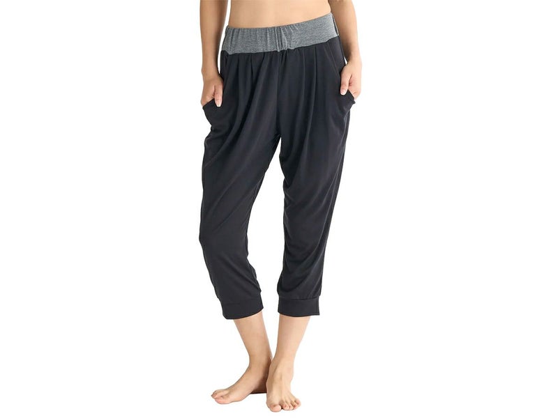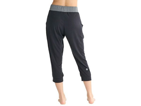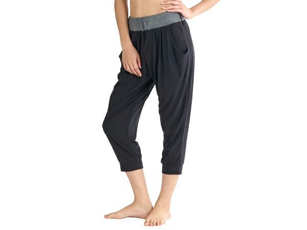薄手素材でゆるっとしたシルエットの膝下丈ヨガパンツ。