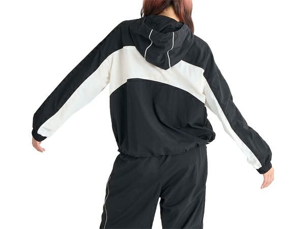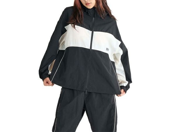 90年代風のカーブ切り替えデザインが特徴の、フード付きジャケット。