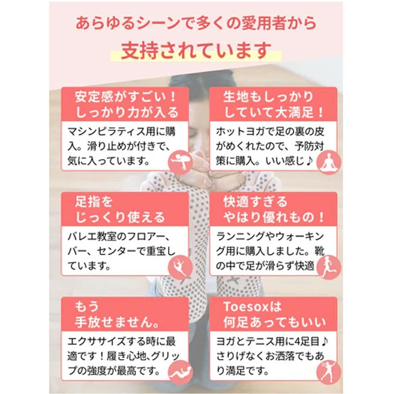 toesox独自開発のシリコングリップが滑りを防ぎ、