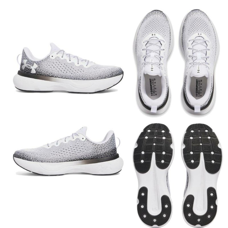 高いフィット感のアッパーとUAホバクッショニングが着地時の安定性を向上。