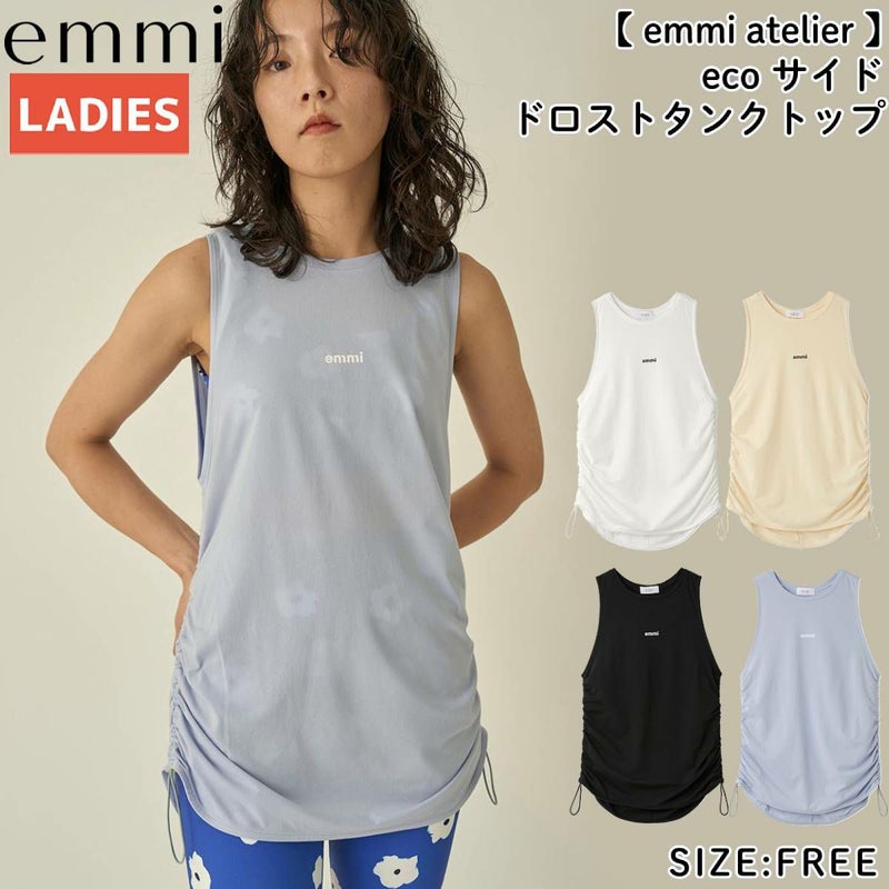 スポーツ フィットネス ウェア エミ emmi emmi atelier eco サイドドロストタンクトップ レディース ポリエステル ホワイト クリーム ブラック ブルー スポーツ フィットネス ウェア ヨガウェア 13WCT251086