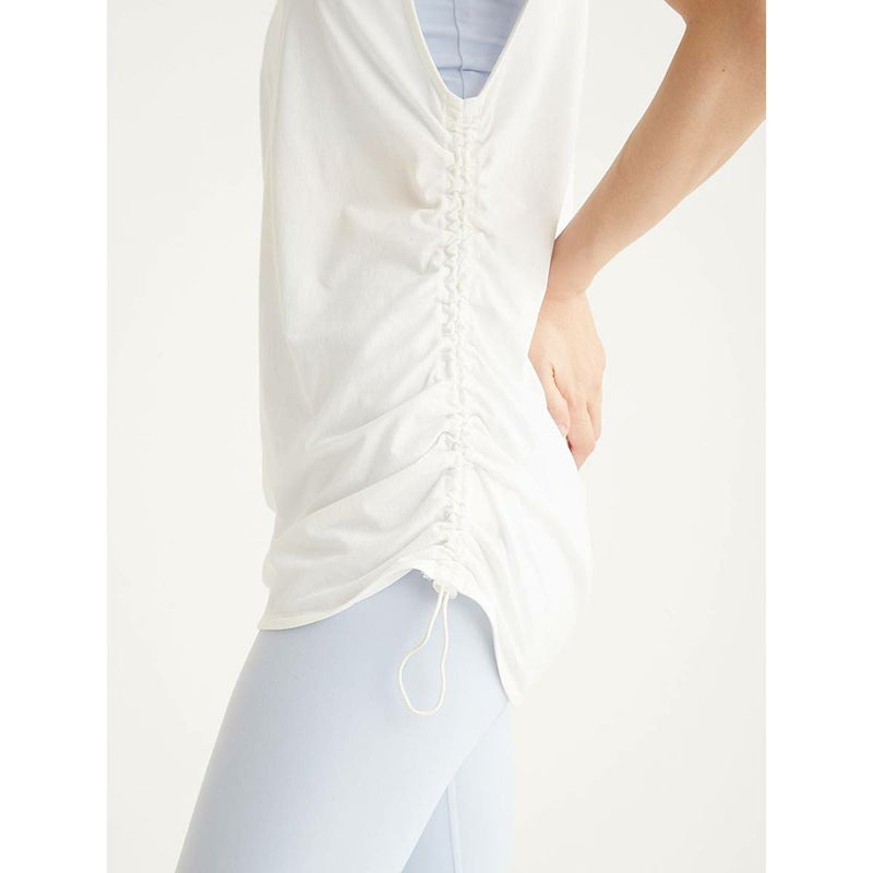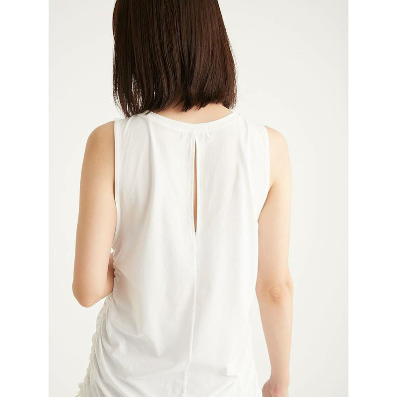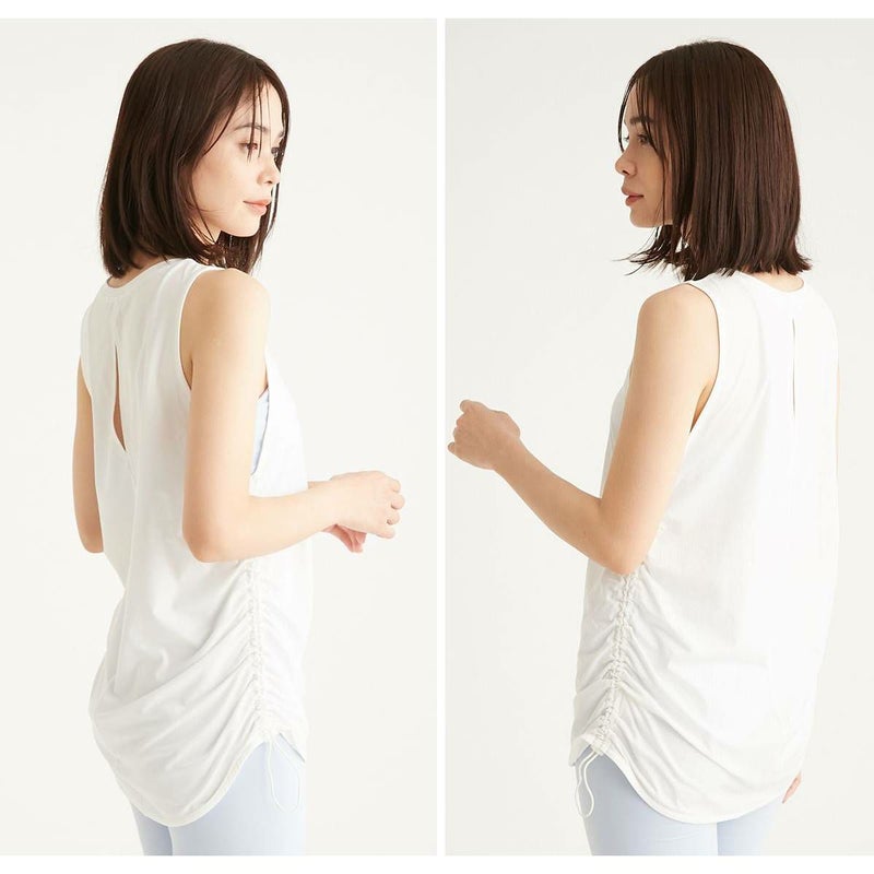 両脇のドロストデザインが特徴のタンクトップ。