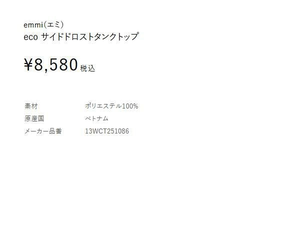 【emmi atelier】eco サイドドロストタンクトップ