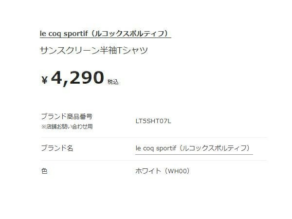 6. ルコック le coq sportif サンスクリーン半袖Tシャツ レディース 春 夏 ホワイト 白 スポーツ フィットネス 半袖 Tシャツ LT5SHT07L-WH00
