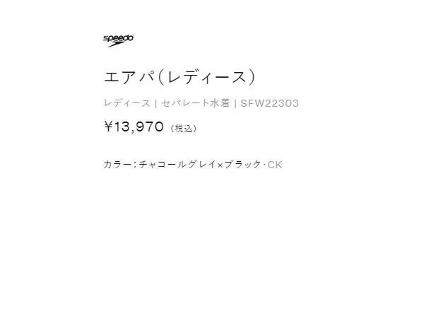【10%OFF】水泳 スイム フィットネス 水着 スピード speedo Airpa エアパ レディース グレー 灰色 水泳 スイム フィットネス 水着 SFW22303-CK