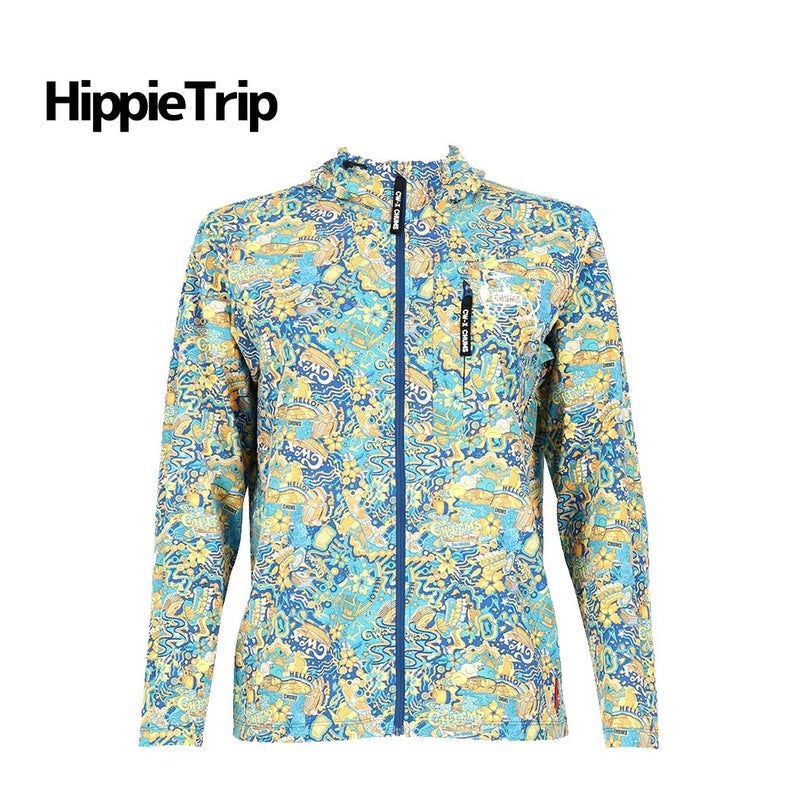 着やすいシンプルなブラックと明るく元気の出るヒッピープリントの2色展開。