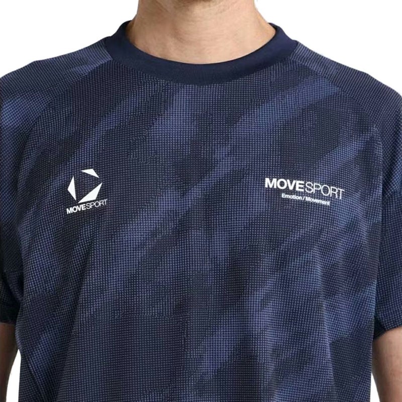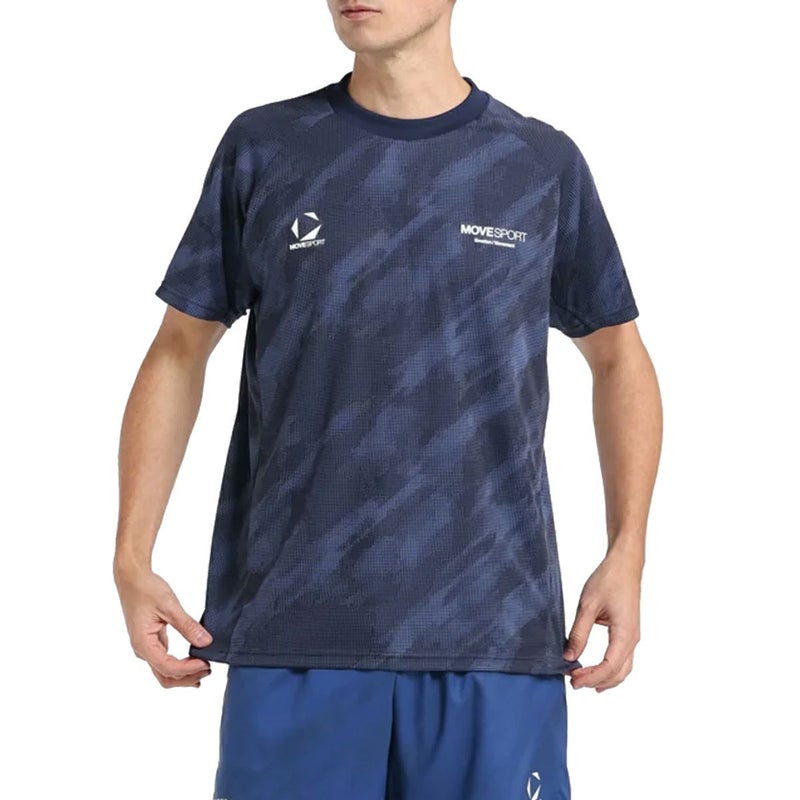 6. ムーブスポーツ MOVESPORT 総柄ジャガード 半袖シャツ メンズ 春 夏 ネイビー 紺 スポーツ トレーニング 半袖 Tシャツ ST5SHT03M-NV00